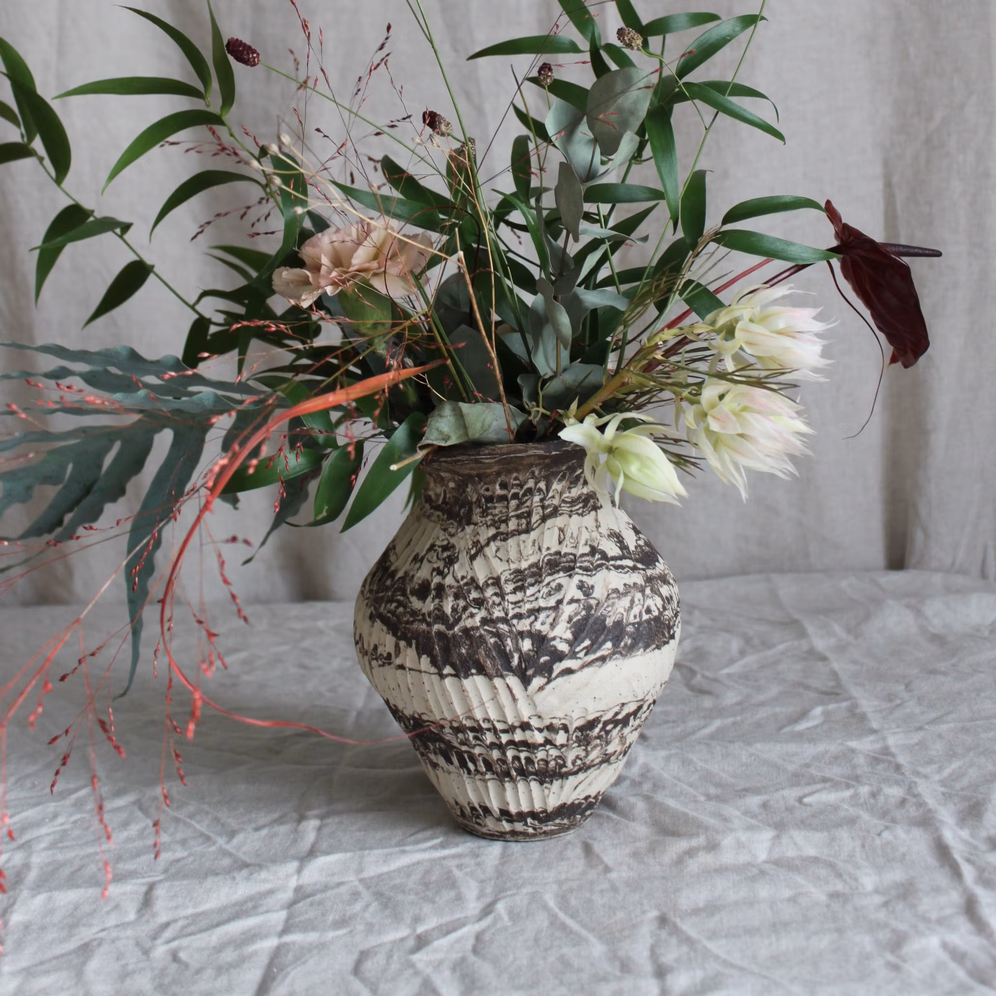 Vas med rå strukturerad utsida, glaserad insida. Höjd 20 cm.