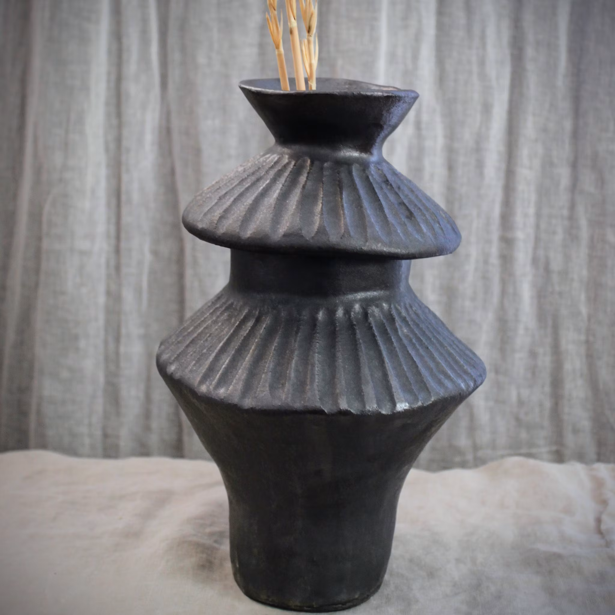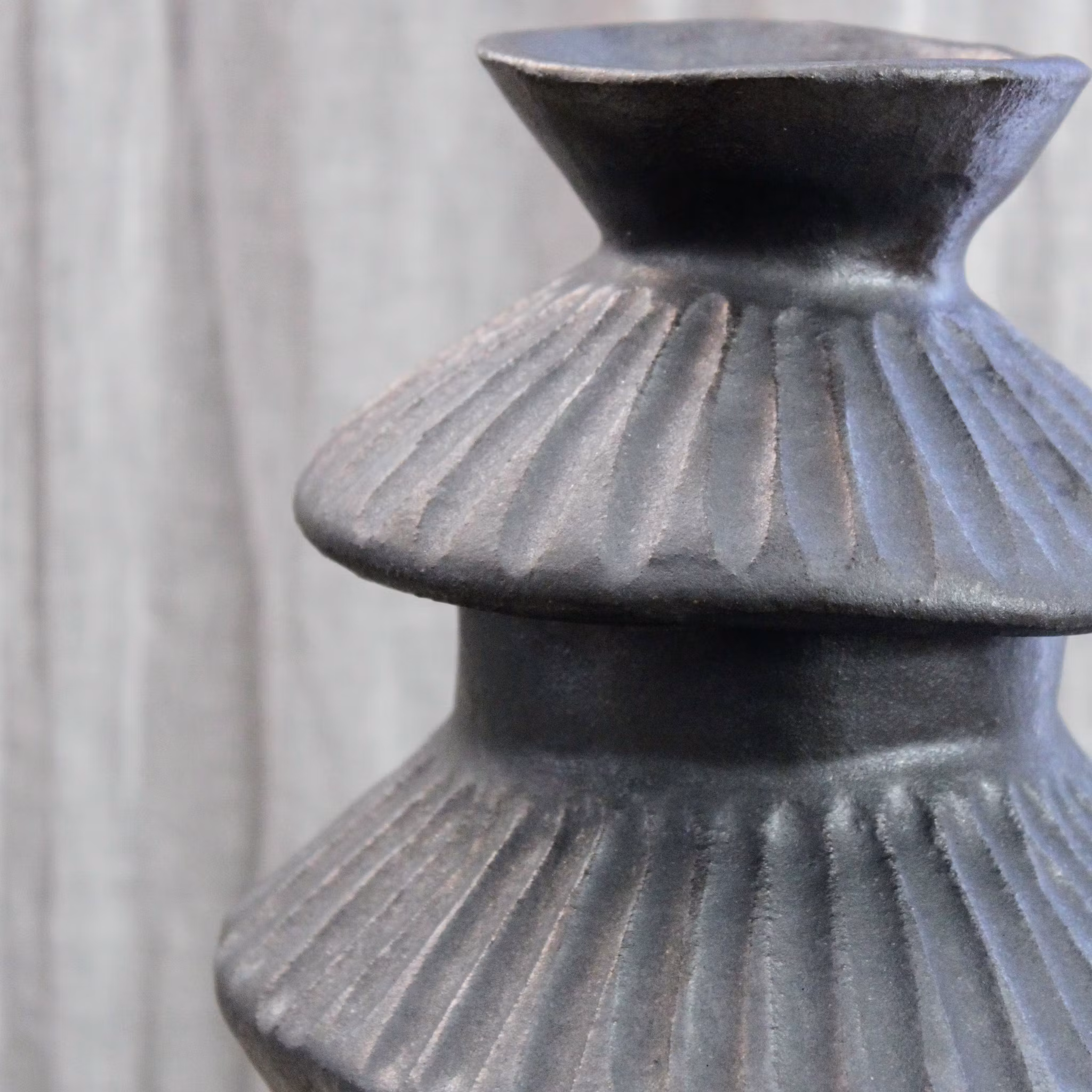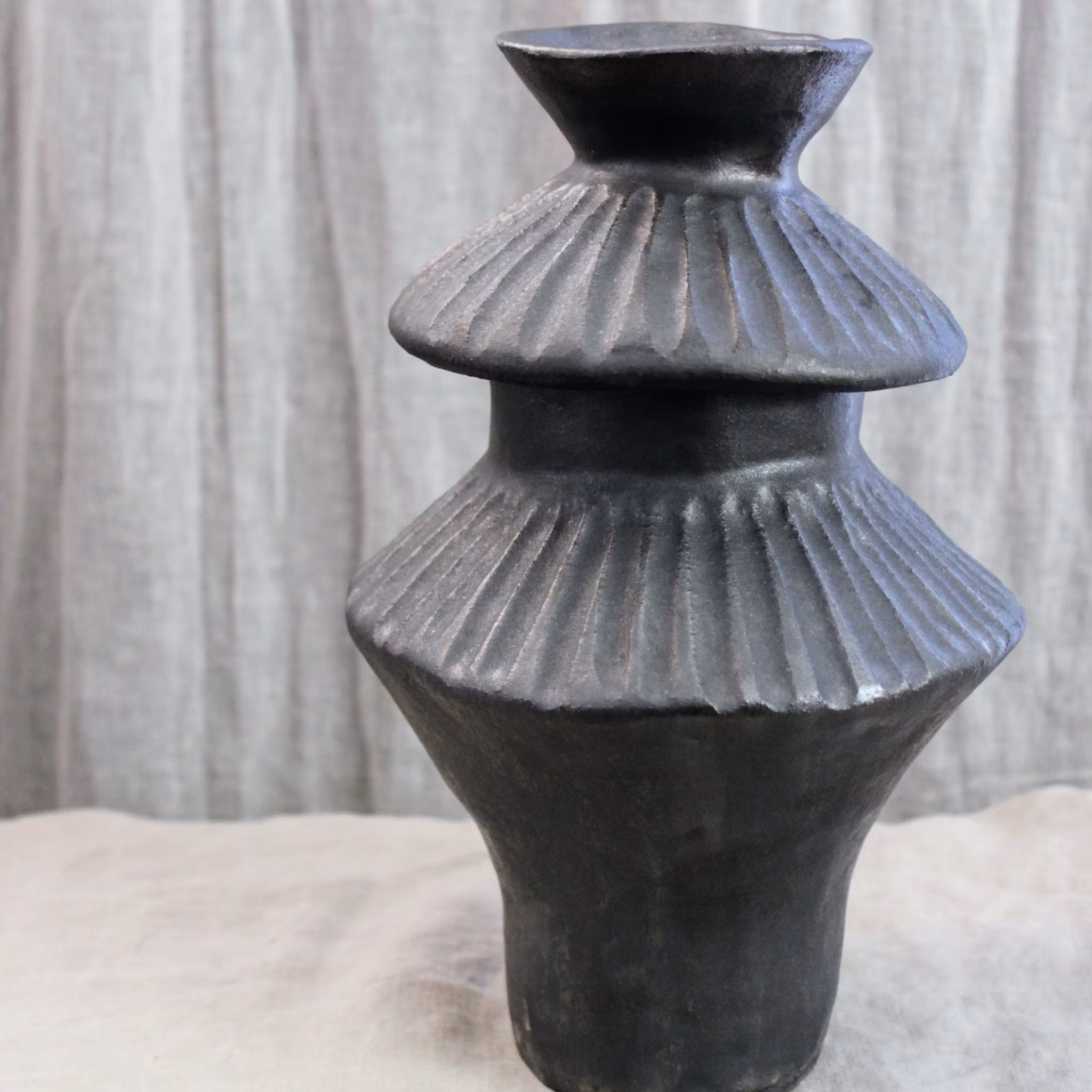 Svartbrun vas med struktur och lyster. Höjd ca 27 cm.